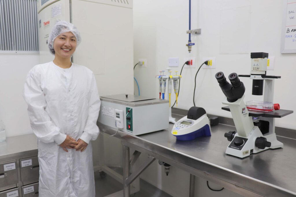 Uma dessas pesquisadoras é Luciene Airy Nagashima, biomédica com mestrado e doutorado em Microbiologia, que está na equipe de um projeto que busca implantar um banco de células com desenvolvimento de metodologias para controle de qualidade celular.