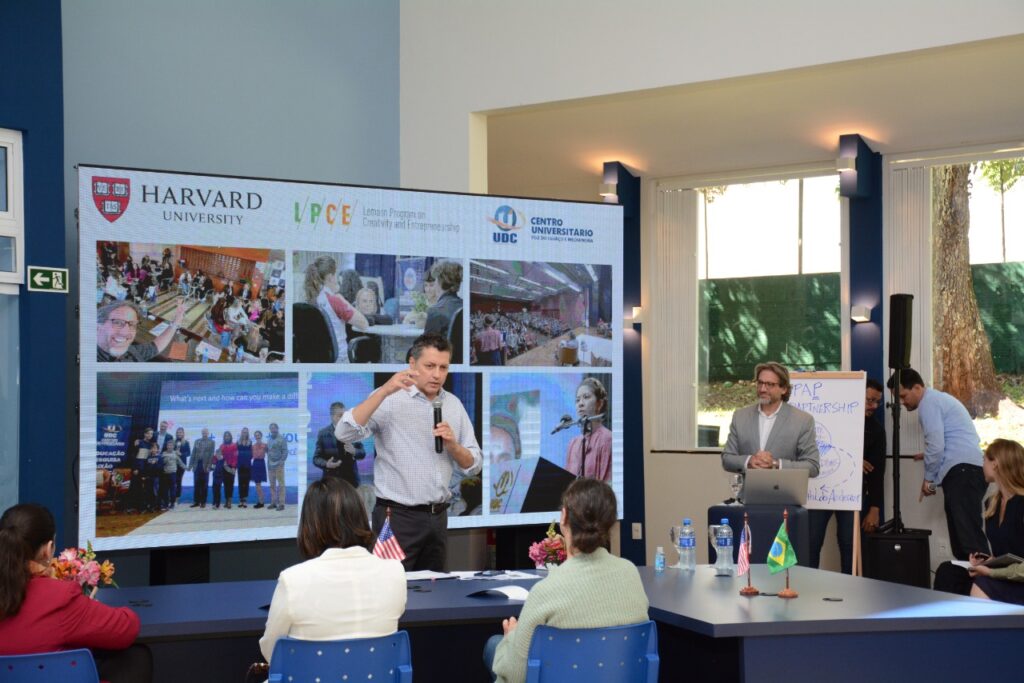 Uma parceria entre o centro universitário UDC, de Foz do Iguaçu, e a Universidade de Harvard permitiu o lançamento de um programa inédito na América do Sul. Apresentado a estudantes, professores e empresários da região oeste do Paraná e da tríplice fronteira, a primeira fase do programa é focada em projetos de inovação. “Essa é uma ferramenta muito útil em Harvard e pode ser compartilhada com novos programas, novas iniciativas e soluções para desafios enfrentados na região. Assim, todos poderão criar uma grande comunidade, uma ponte entre Foz e Cambridge e para todo o planeta. Esse é o plano!”, disse o professor Sam Magee, coordenador do programa na universidade norte-americana.