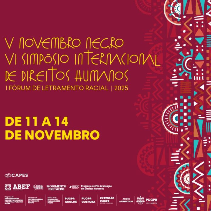 Assessoria – A Pontifícia Universidade Católica do Paraná (PUCPR) promove o V Novembro Negro, evento que propõe refletir, debater e transformar as questões estruturais que sustentam as desigualdades e injustiças sociais no Brasil e na América Latina. O evento, que está em sua quinta edição, será realizado de 11 a 14 de novembro no Câmpus Curitiba e conta em sua programação com o VI Simpósio Internacional de Direitos Humanos, a V Semana da Consciência Negra, além do I Fórum de Letramento Racial.