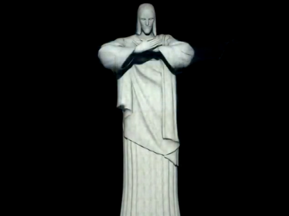 O Cristo Redentor “fechou” os braços, num abraço simbólico ao Rio de Janeiro. O efeito – uma ilusão de óptica provocada por projeção de luzes e imagens – faz parte da campanha “Carinho de Verdade”, de combate à violência e à exploração sexual de crianças.
